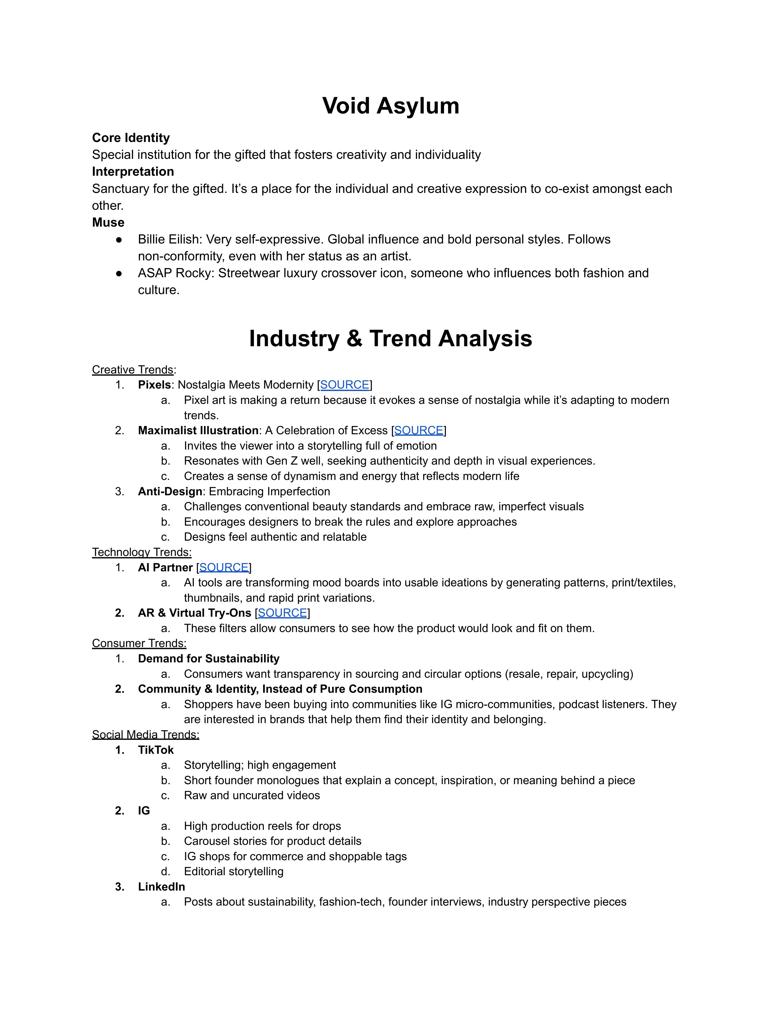 Taking part in the rebranding of Void Asylum surprised me in the way that it opened up a new career path that I could follow. It was the first opportunity I engaged with branding and I truly enjoyed the process of it all. From redefining Void Asylum from scratch, incorporating competitive analysis and market research, merging websites into a cohesive online presence, I learned how design and strategy can reshape the way a brand presents itself in the streetwear industry. Throughout this experience, I discovered how much value creativity and building visual stories that can bring a brand to life.
